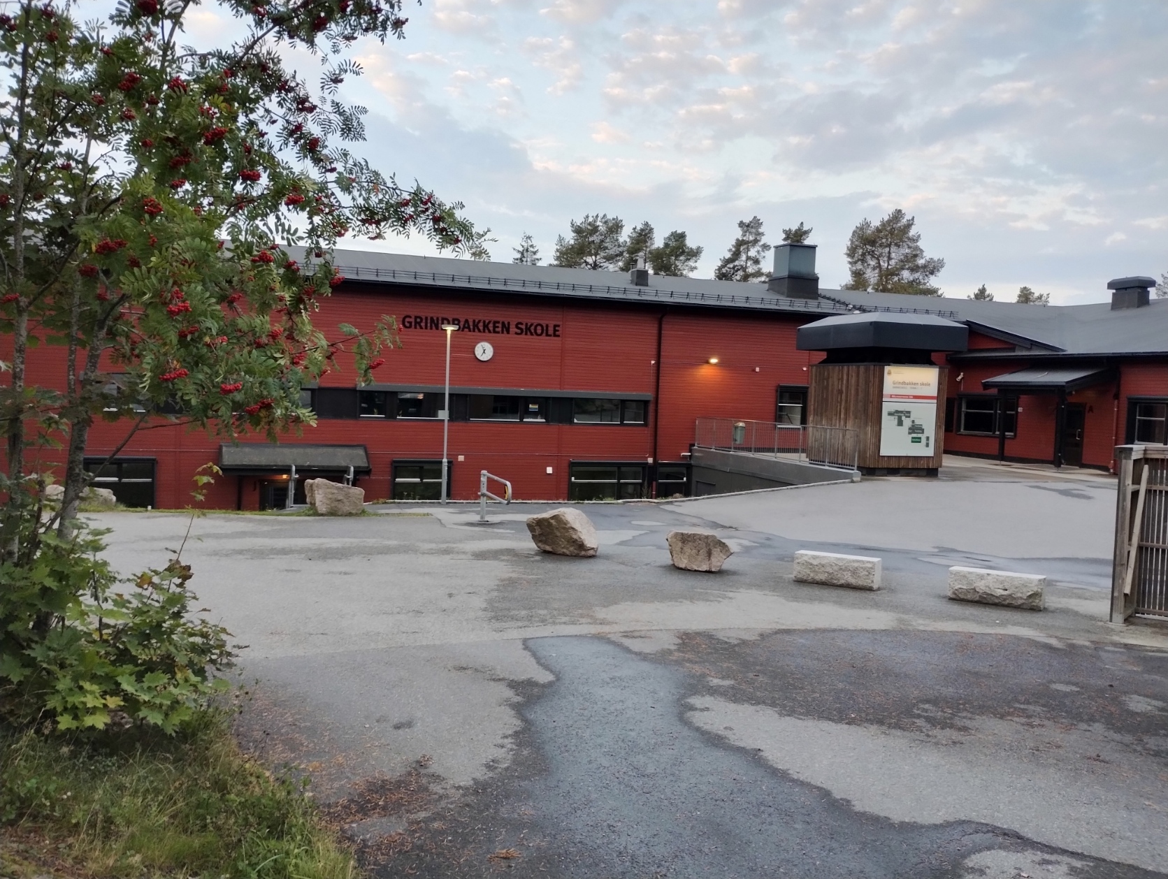 I området er det flere barnehager og Grindbakken barneskole ligger like ved. Adkomst til skolen er via trafikk stille gater og gangvei.